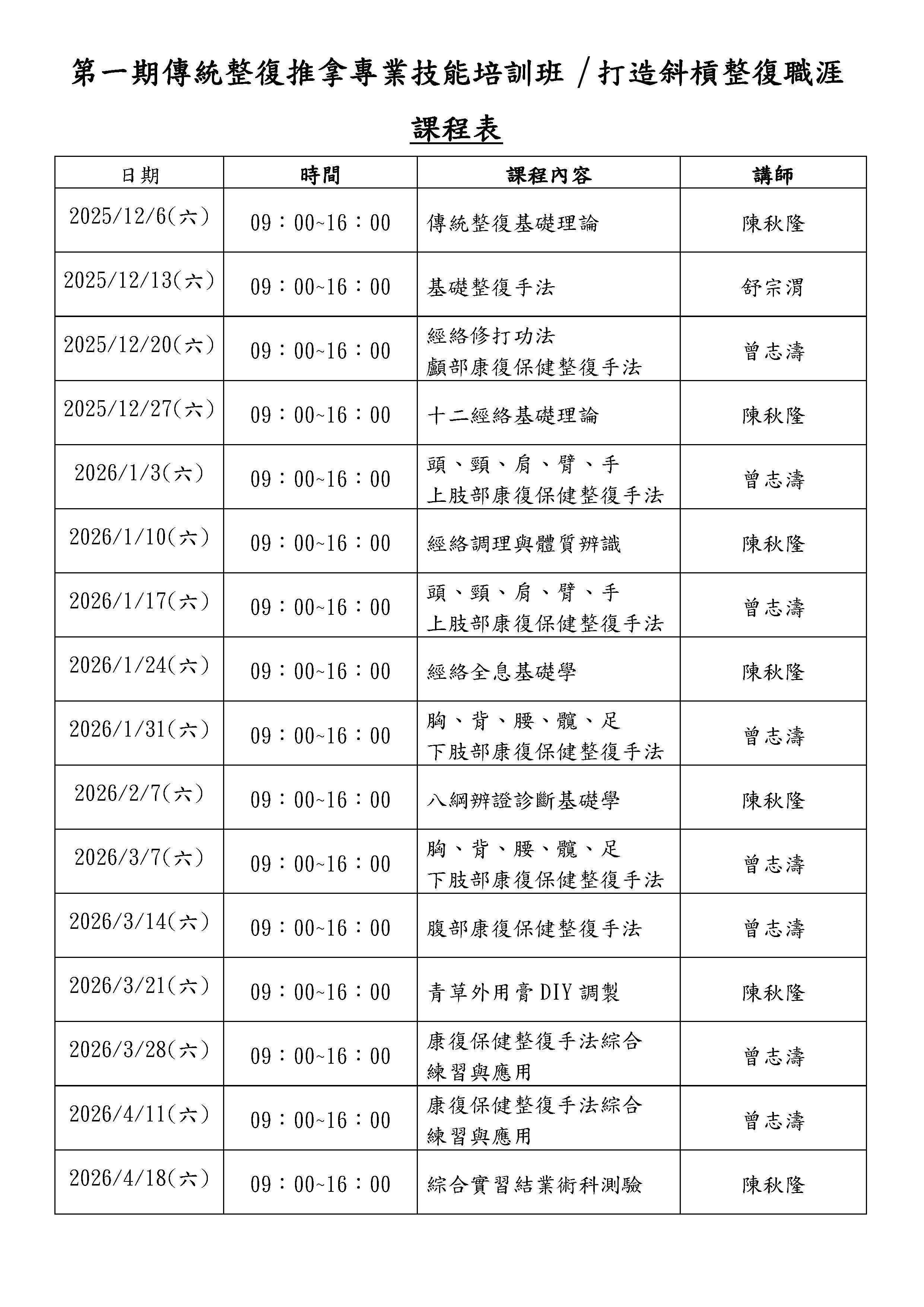 傳統整復推拿專業技能培訓班|打造斜槓整復職涯20251021